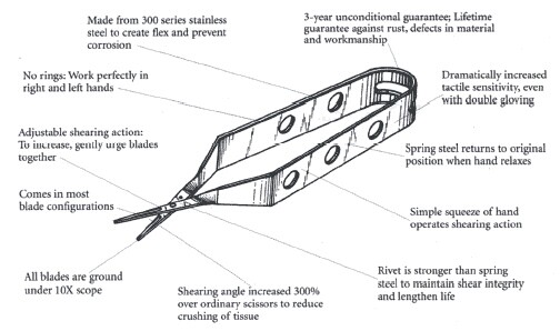 來自laschal的剪刀,其制造技術有了革命性的突破。獨特的設計使得你的使用不用區(qū)分左右手;高于普通剪刀3倍的剪切角度降低組織損傷度;刀刃使用不會變得松弛;便于拿取,無柄環(huán)狀結構;高品質,低價位;防腐蝕,防斷裂。